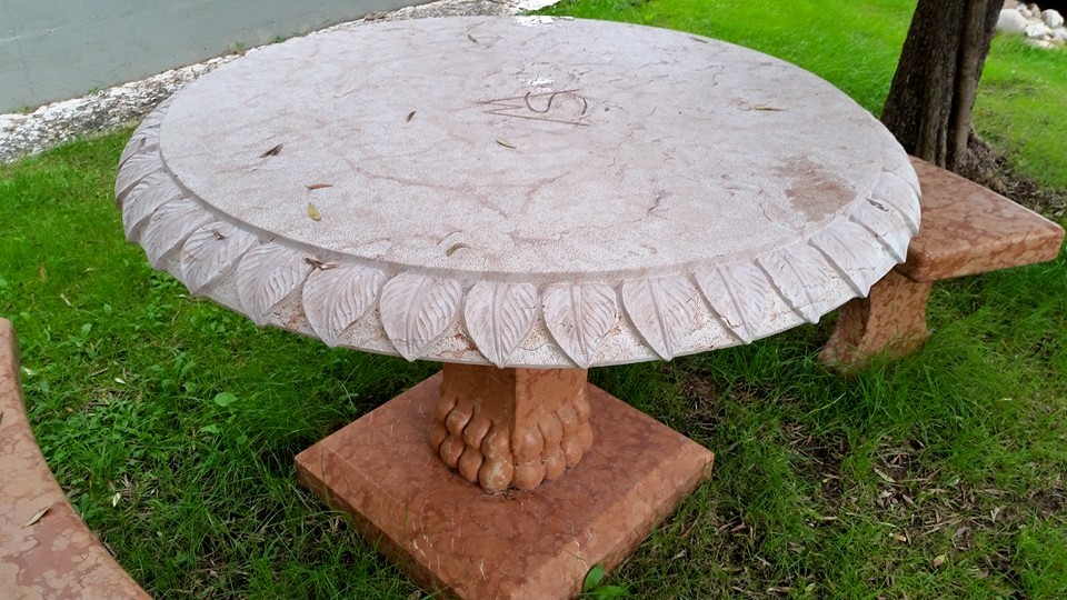 A bespoke set consisting of a round table and two matching round benches, handcrafted in Rosso Verona and Nembro. Combined with the matching decking, this set transforms any garden area into a centre of meeting and sharing.