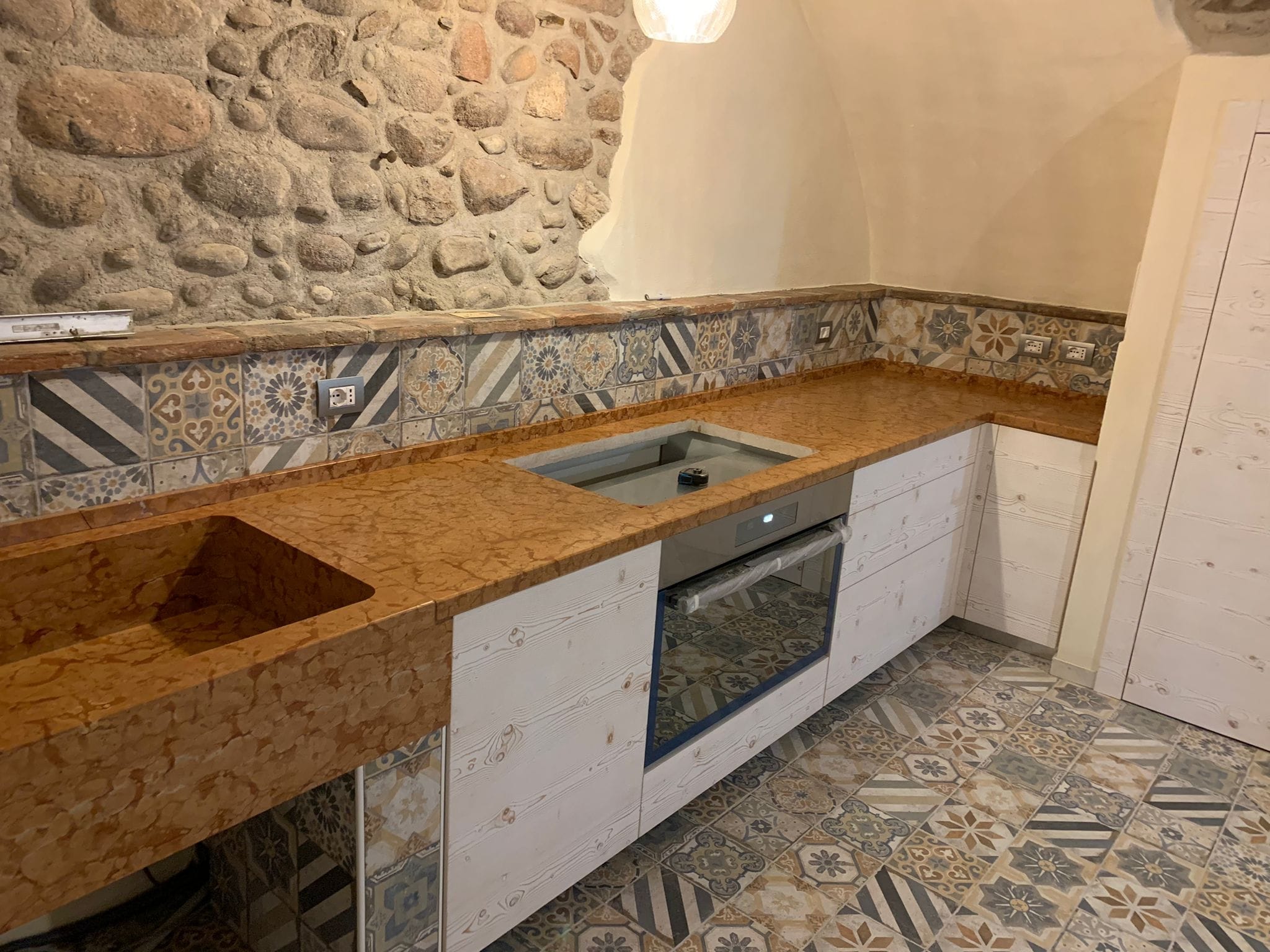 Piani di lavoro su misura per la cucina, con aperture per piani cottura e lavello coordinati, ricavati da un unico blocco. Un’eleganza senza tempo per un arredo cucina sostenibile.