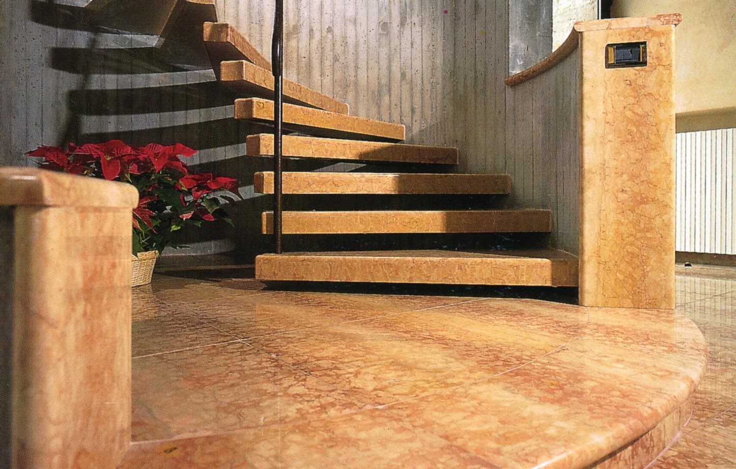 Produciamo per voi tutti gli elementi delle scale interne, come gradini, alzate e battiscopa in marmo rosso di Verona, marmo di Nembro o altri tipi di marmo o granito.